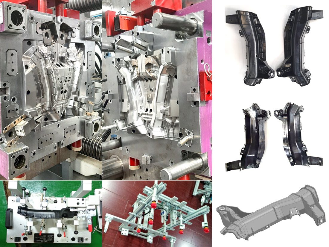 Grupo Geocad ha llevado a cabo un proyecto de 8 moldes con sobremoldeo en insertos metálicos. Junto con los moldes hemos incluido también el suministro de las manos de robot y de los útiles de control.